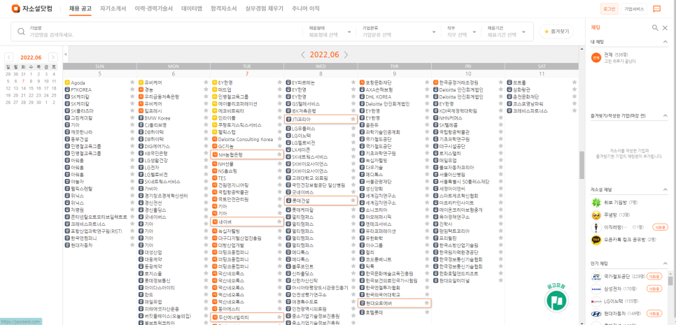 - 중견~대겹위주의 공고들이 많이 올라옴. 자소설닷컴 닉값답게 자소서 쓰는데 특화되어 있음