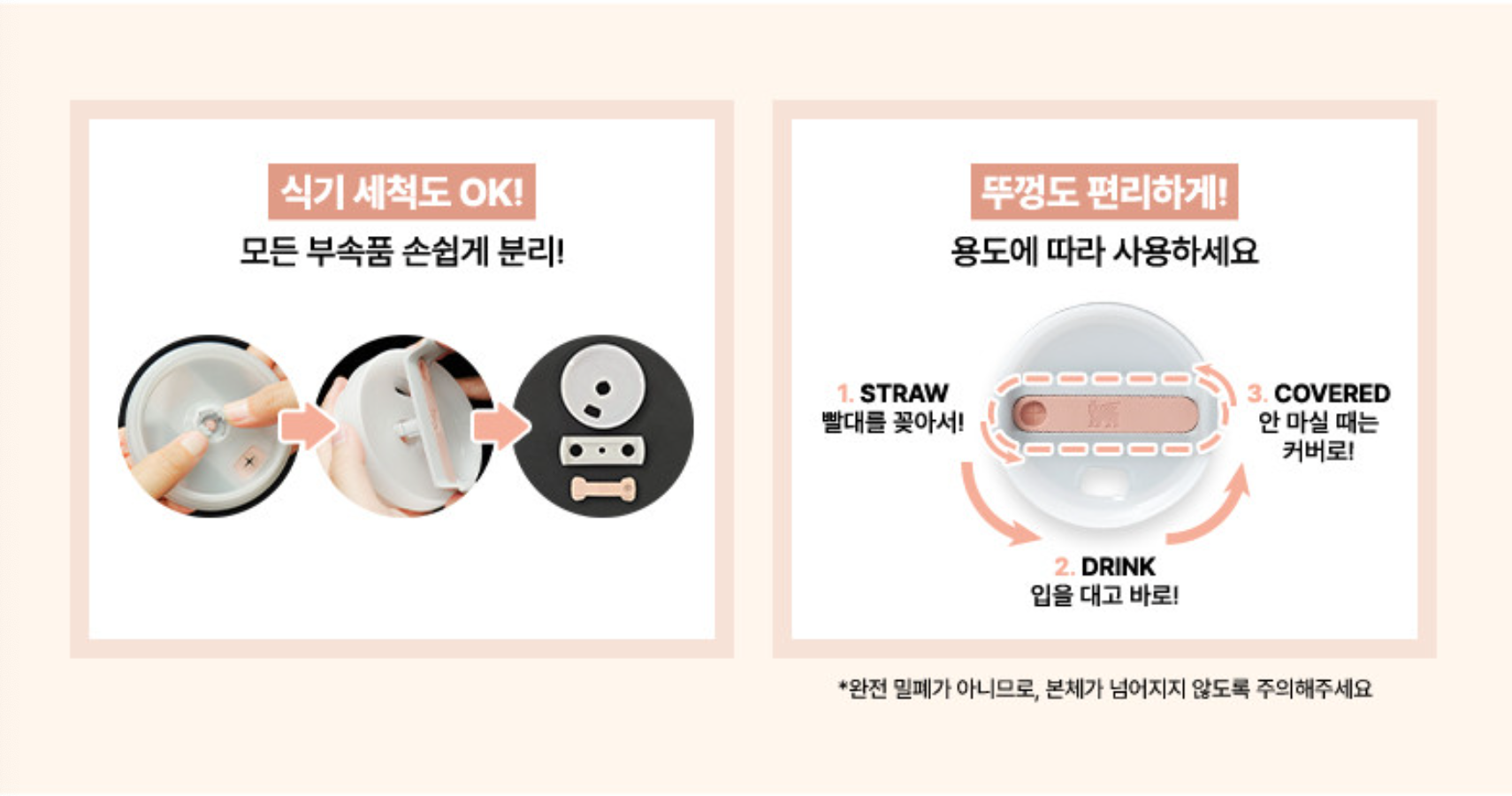 빨대 사용시, 입대고 사용시 안 마실때 커버로 막아놓고 사용이 가능하지만