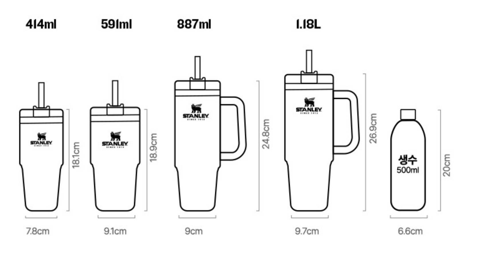 H2.0 제품은 1.18L, 887ml, 591ml, 414ml 네가지로 구분되어 있으며